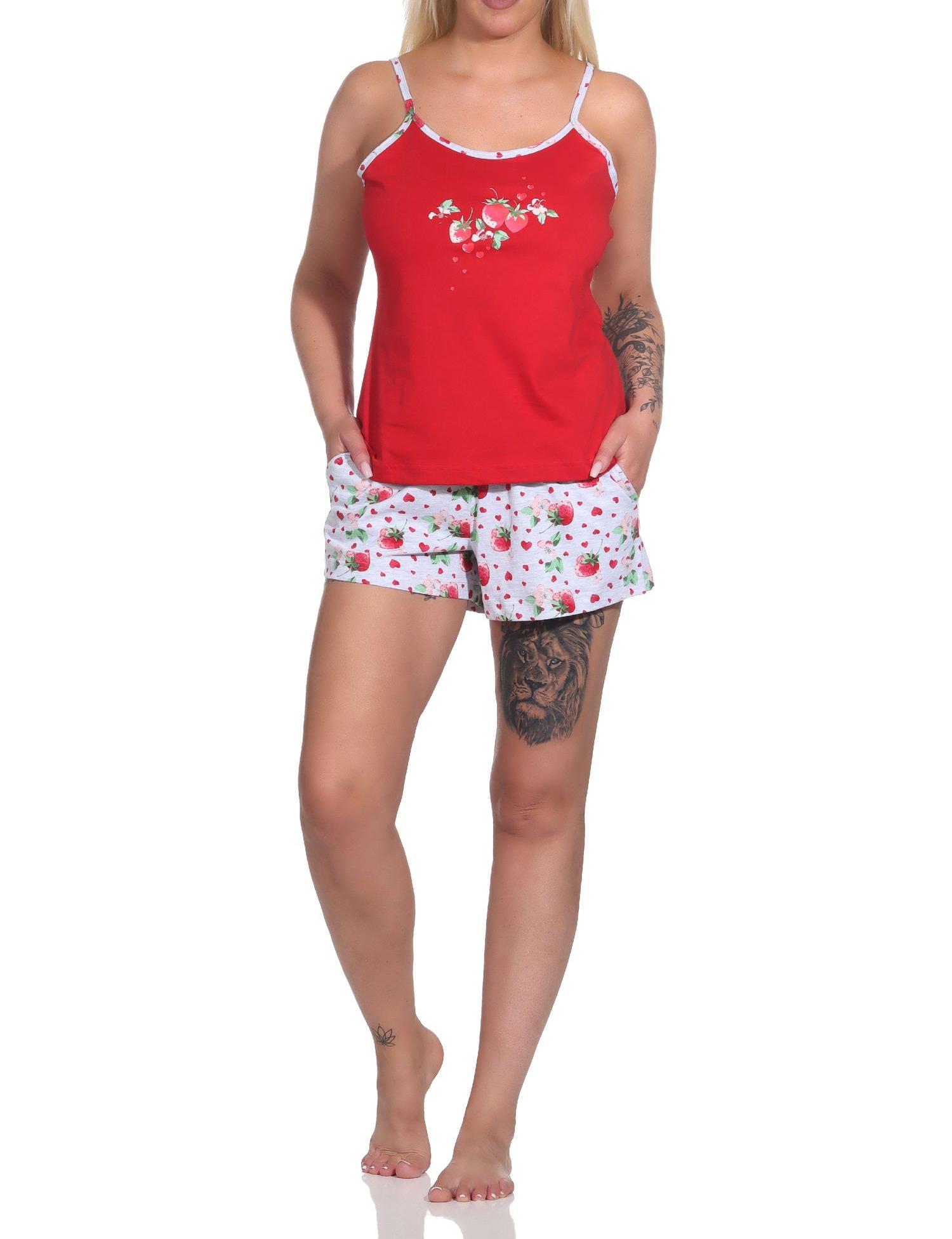 Süßer ärmelloser Damen Schlafanzug Shorty mit Spaghetti-Trägern und Erdbeeren als Motiv - 123 206 90 550