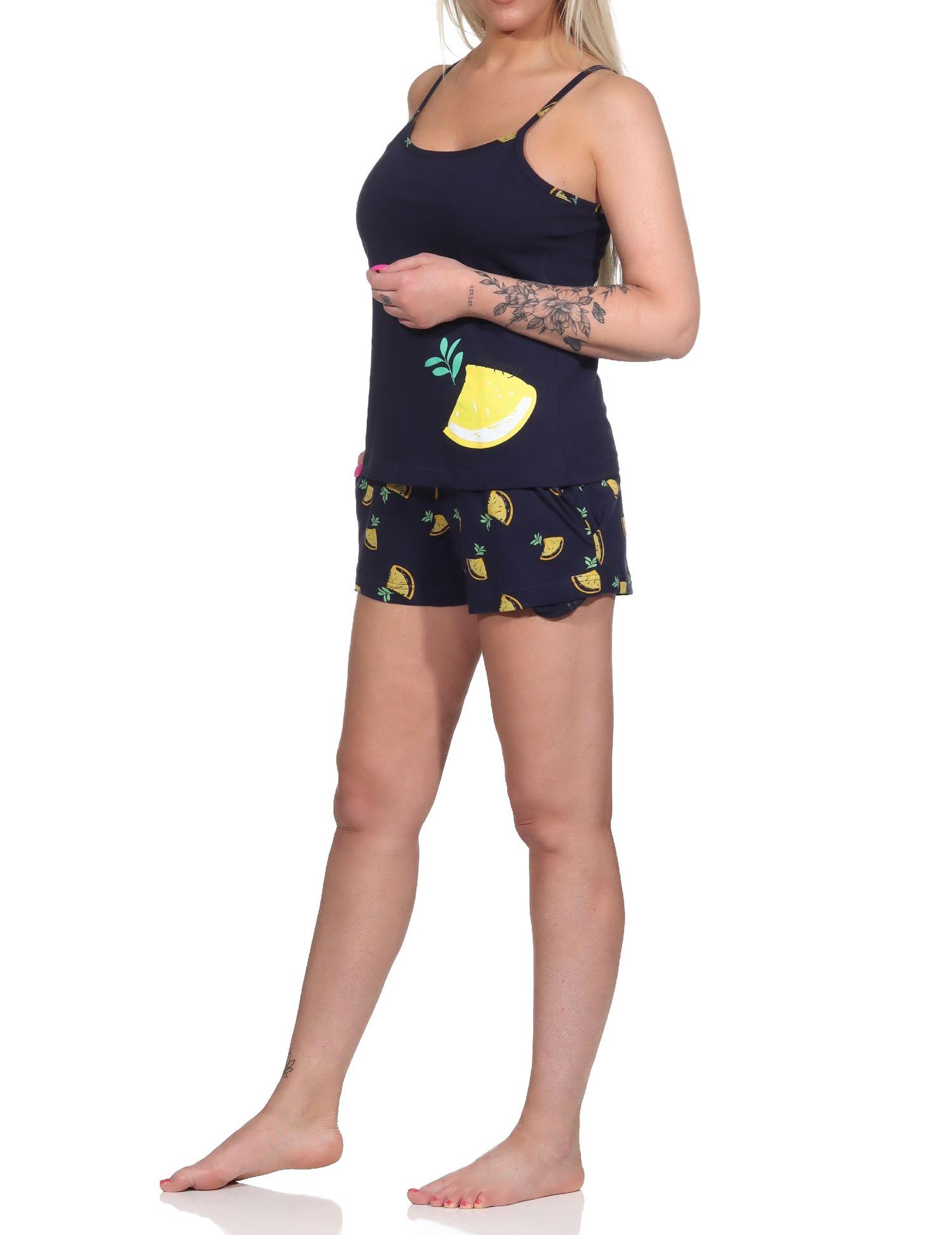 Süsser ärmelloser Damen Schlafanzug Shorty Pyjama mit Zitronen als Motiv - 112 206 90 535