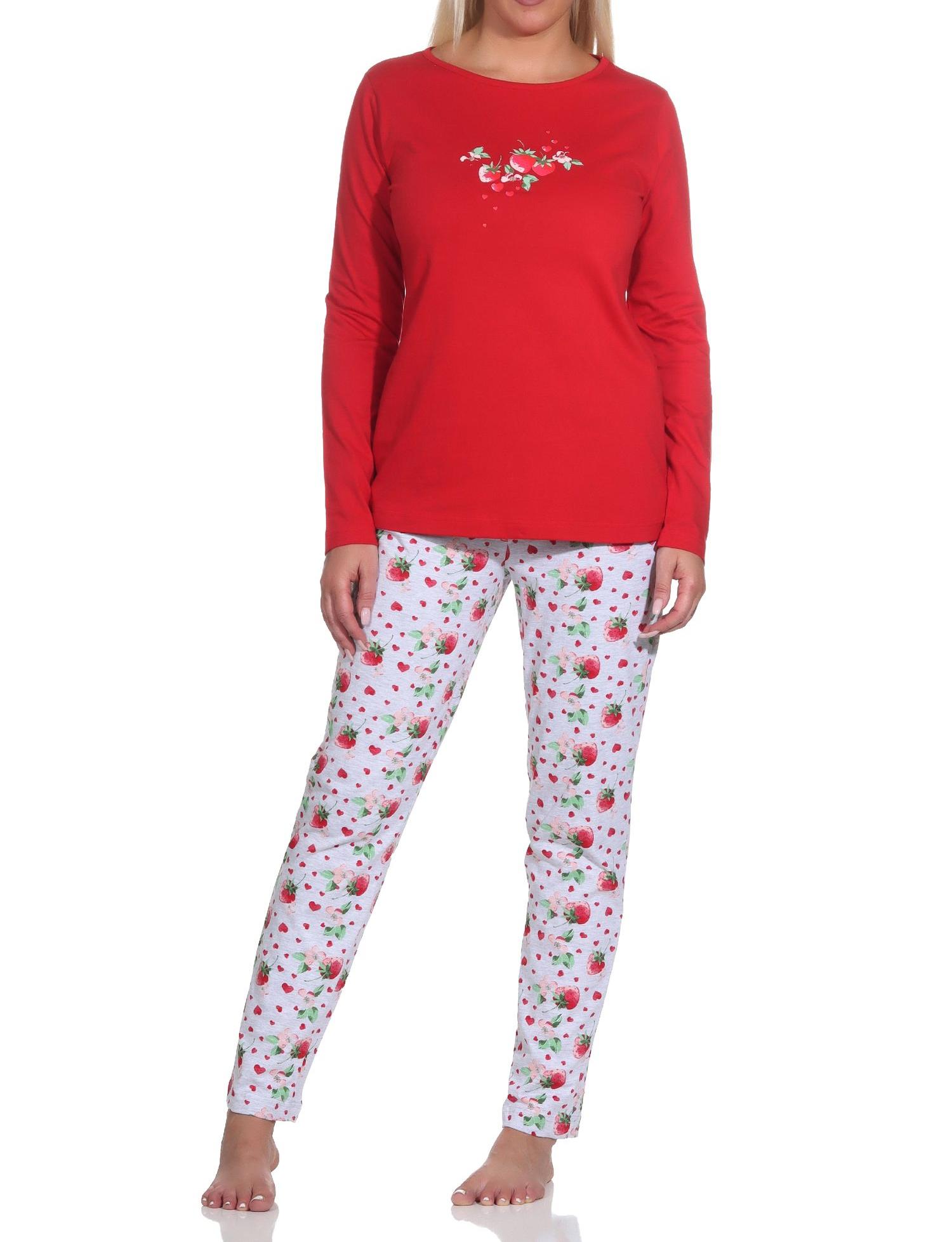 Süsser Normann Damen Schlafanzug langarm Pyjama mit Erdbeeren als Motiv