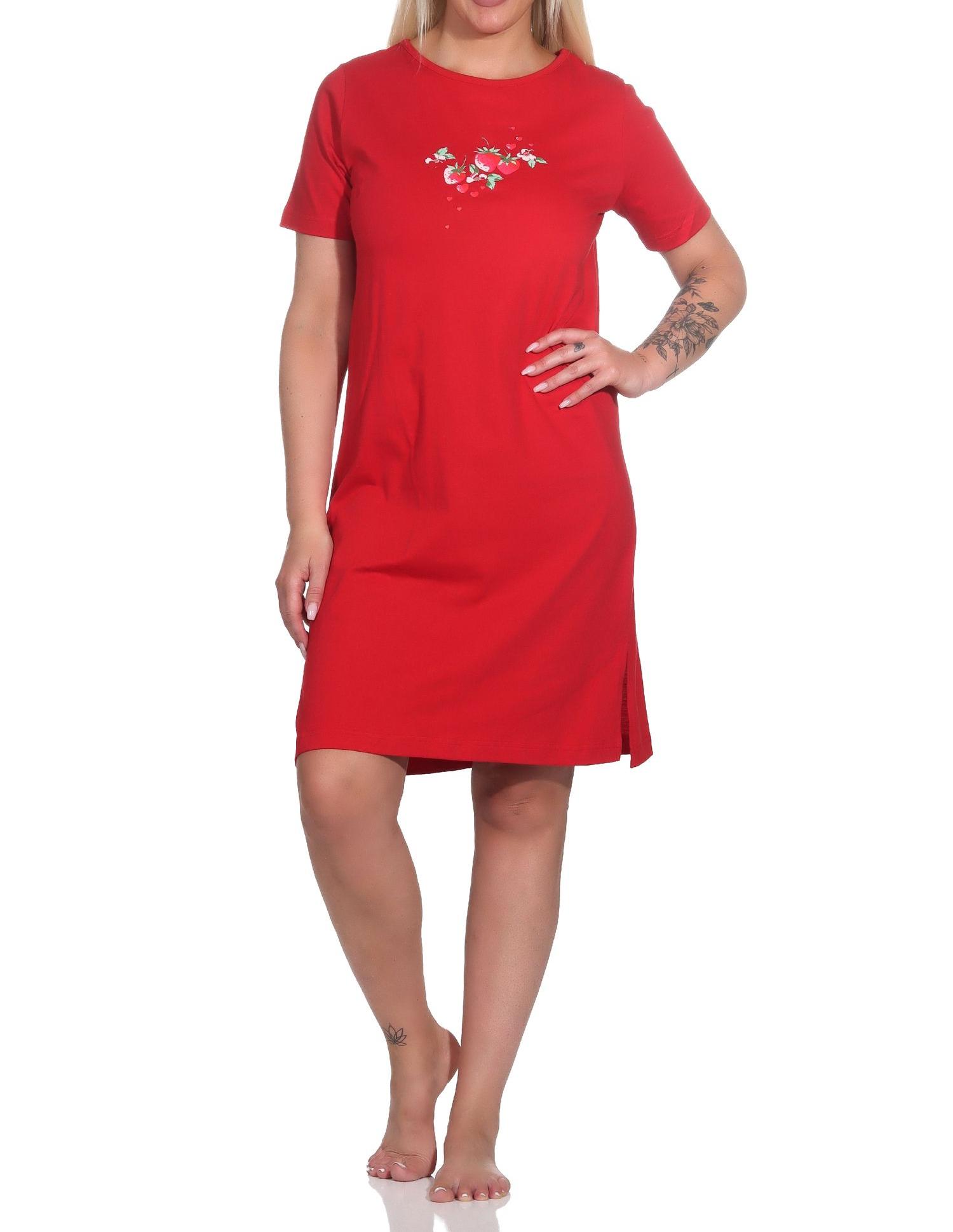 - WUNDERSCHÖNER STYLE IM ERDBEERLOOK: Kurzarm Damen Nachthemd in süsser Optik mit Erdbeeren als Motiv