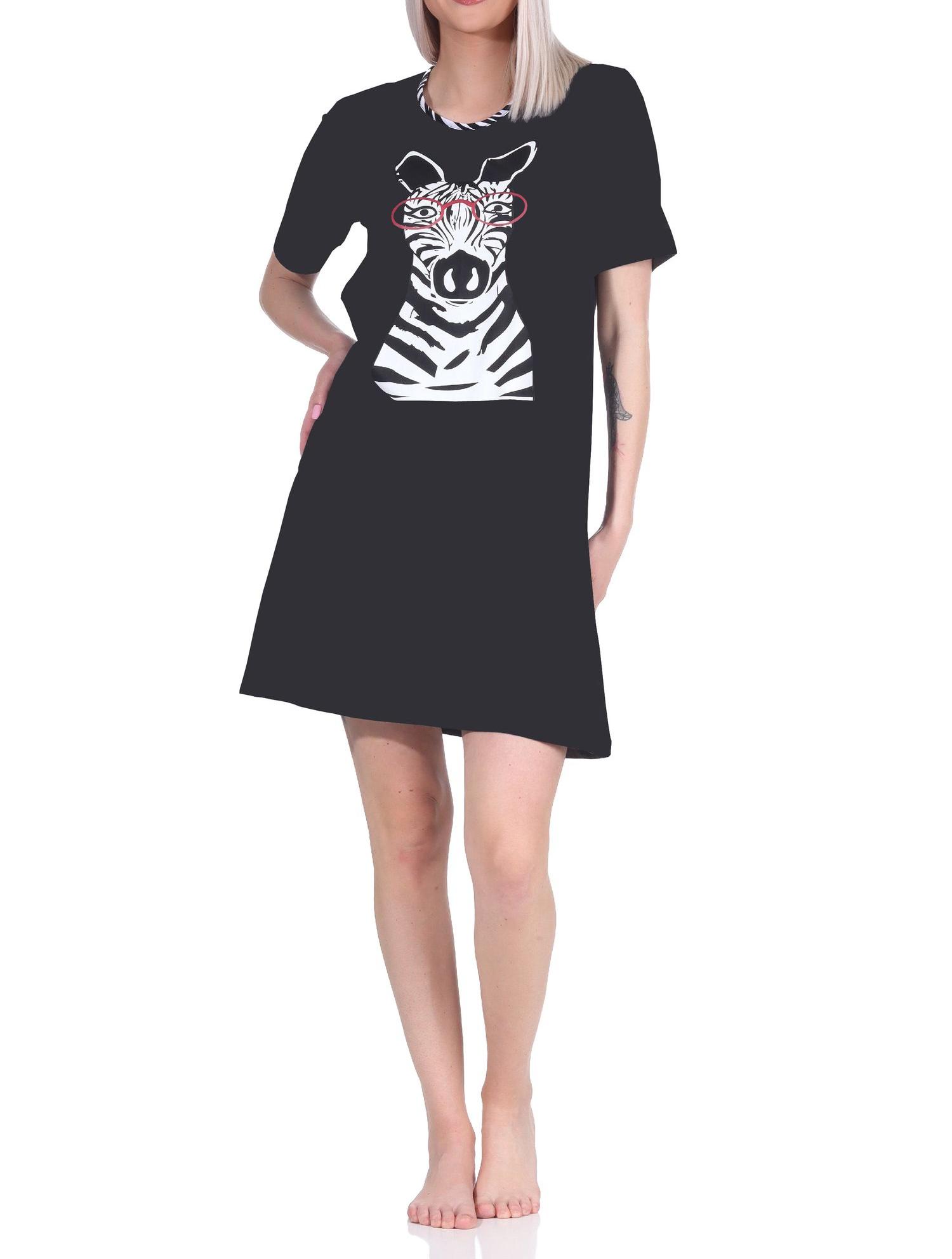- kurzarm Nachthemd mit süßem Tier (Zebra) als Motiv