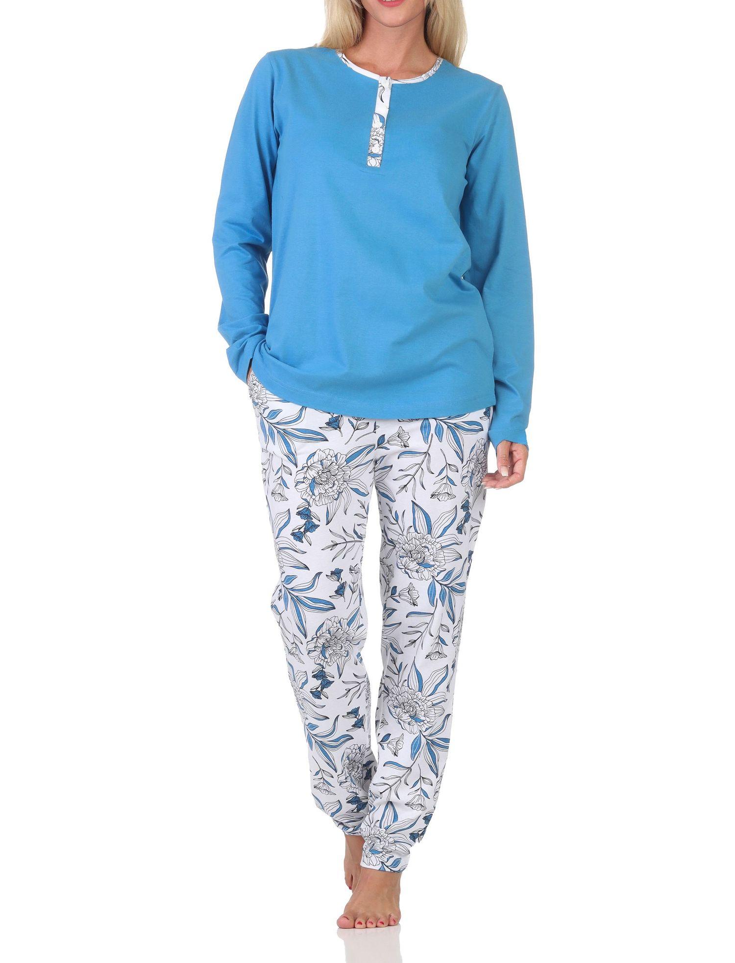 Wunderbarer Damen Pyjama Schlafanzug von Normann mit Hose in floralem Print - auch in Übergrössen