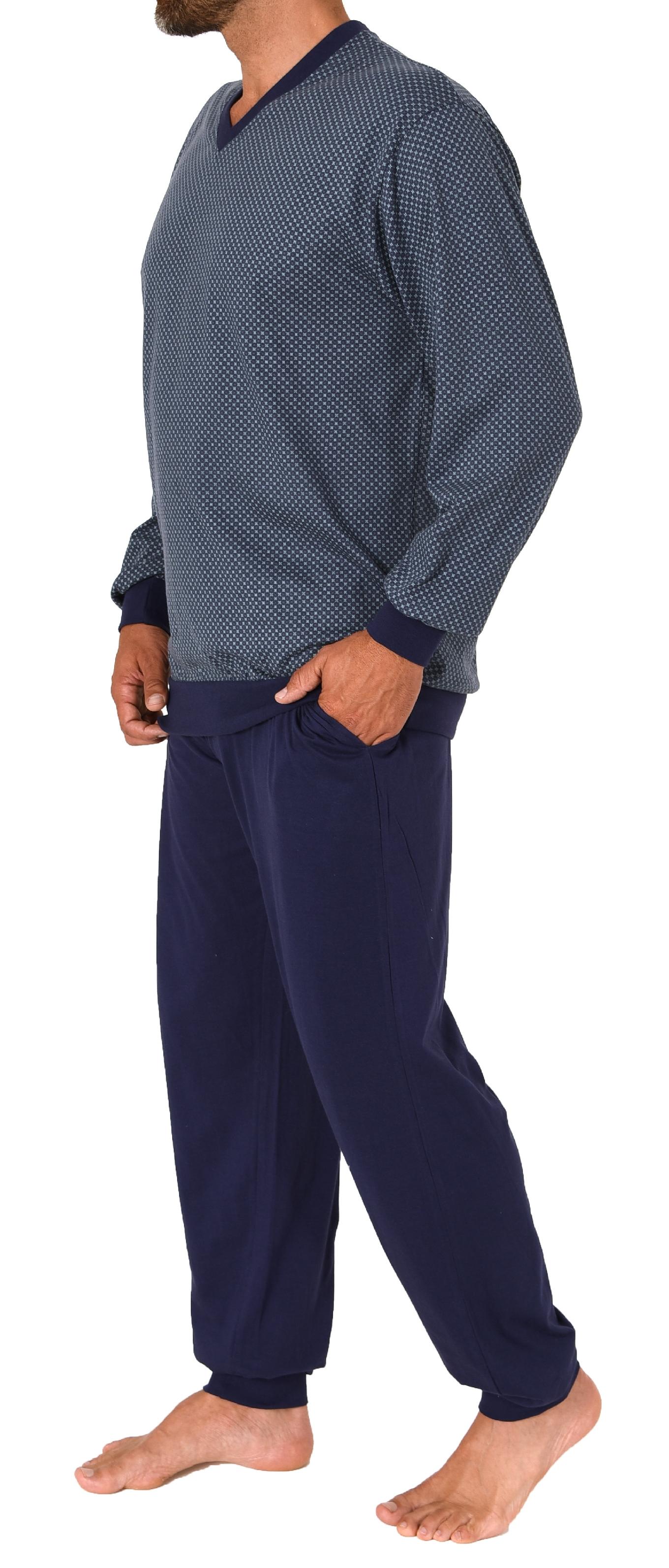Wunderschöner Herren langarm Schlafanzug mit Bündchen Pyjama in edler Optik - 123 101 90 001